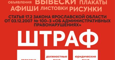 На территории города Ярославля запрещено размещать плакаты, афиши, объявления, листовки, указатели и другую информацию в непредназначенных для этого местах. Под запрет попадает размещение на: заборах, дорожных покрытиях, штендерах, фасадах зданий, остановках общественного транспорта, столбах, деревьях, опорах освещения, распределительных щитах и других элементах городской инфраструктуры. Данный запрет закреплён в Правилах благоустройства города Ярославля. Нарушителям грозит административная… Читать далее »