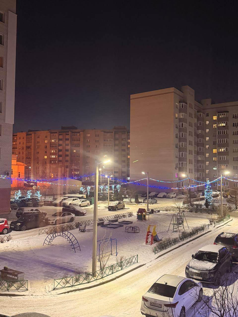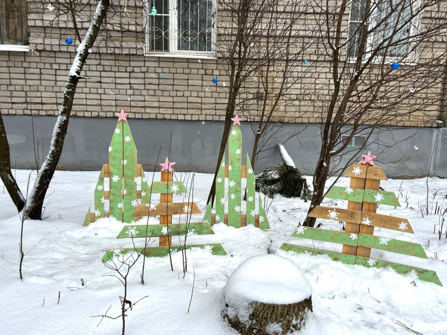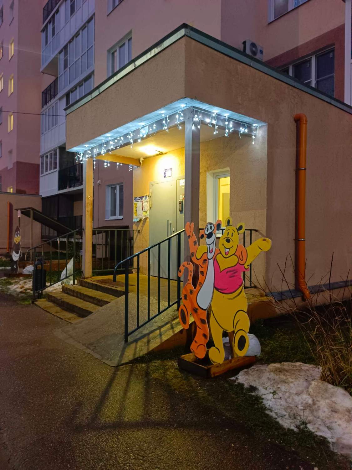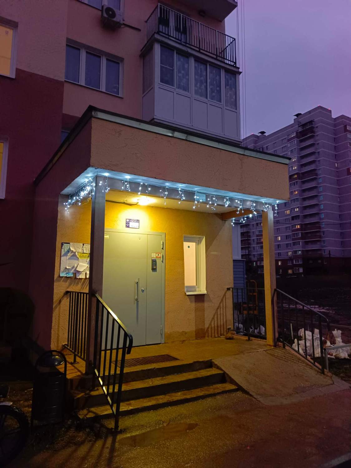 Для создания праздничного настроения во дворе установлена гирлянда над детской площадкой, световыми гирляндами оформлены хвойные насаждения у подъездов.