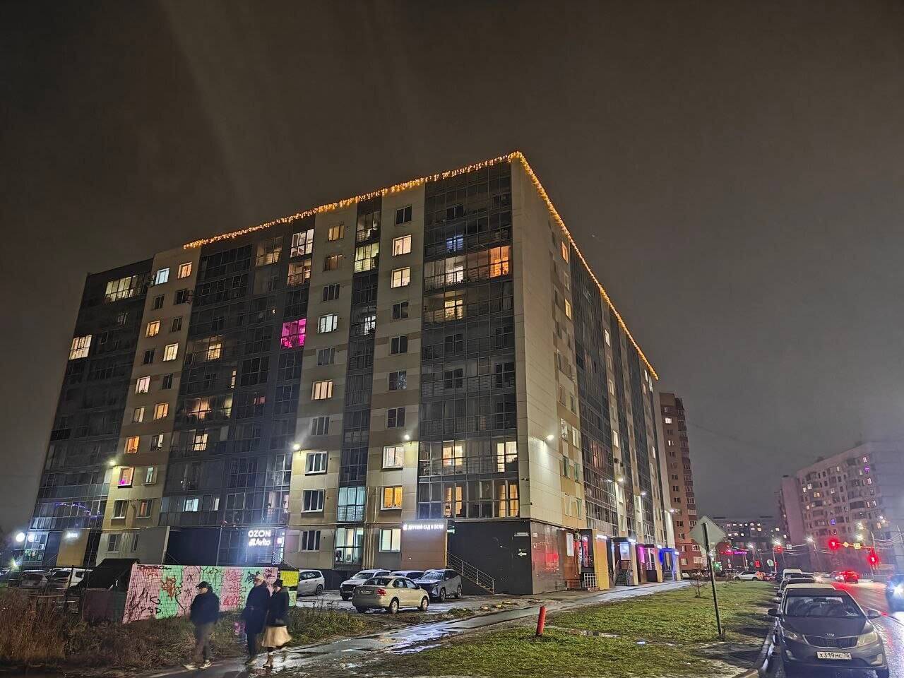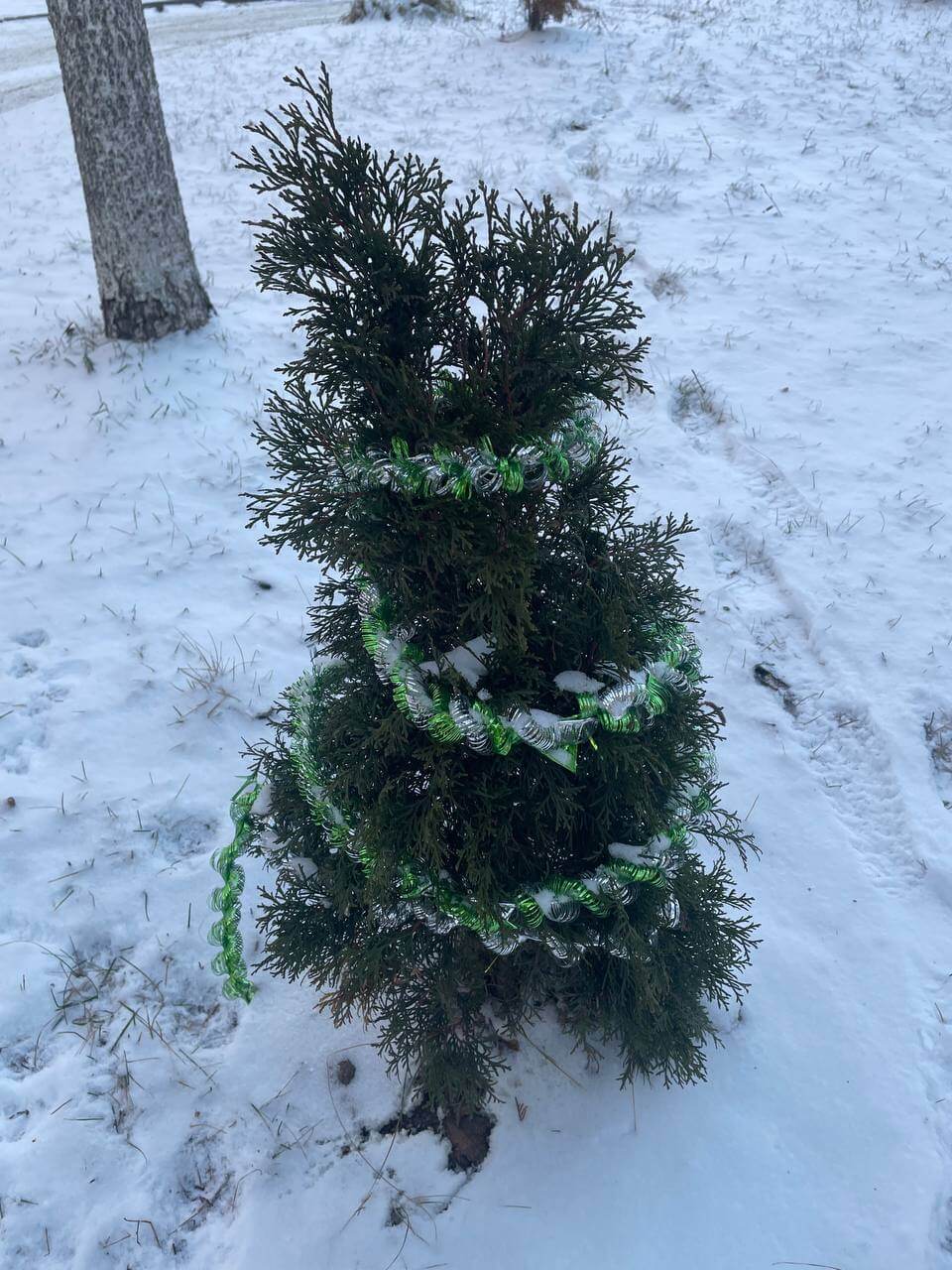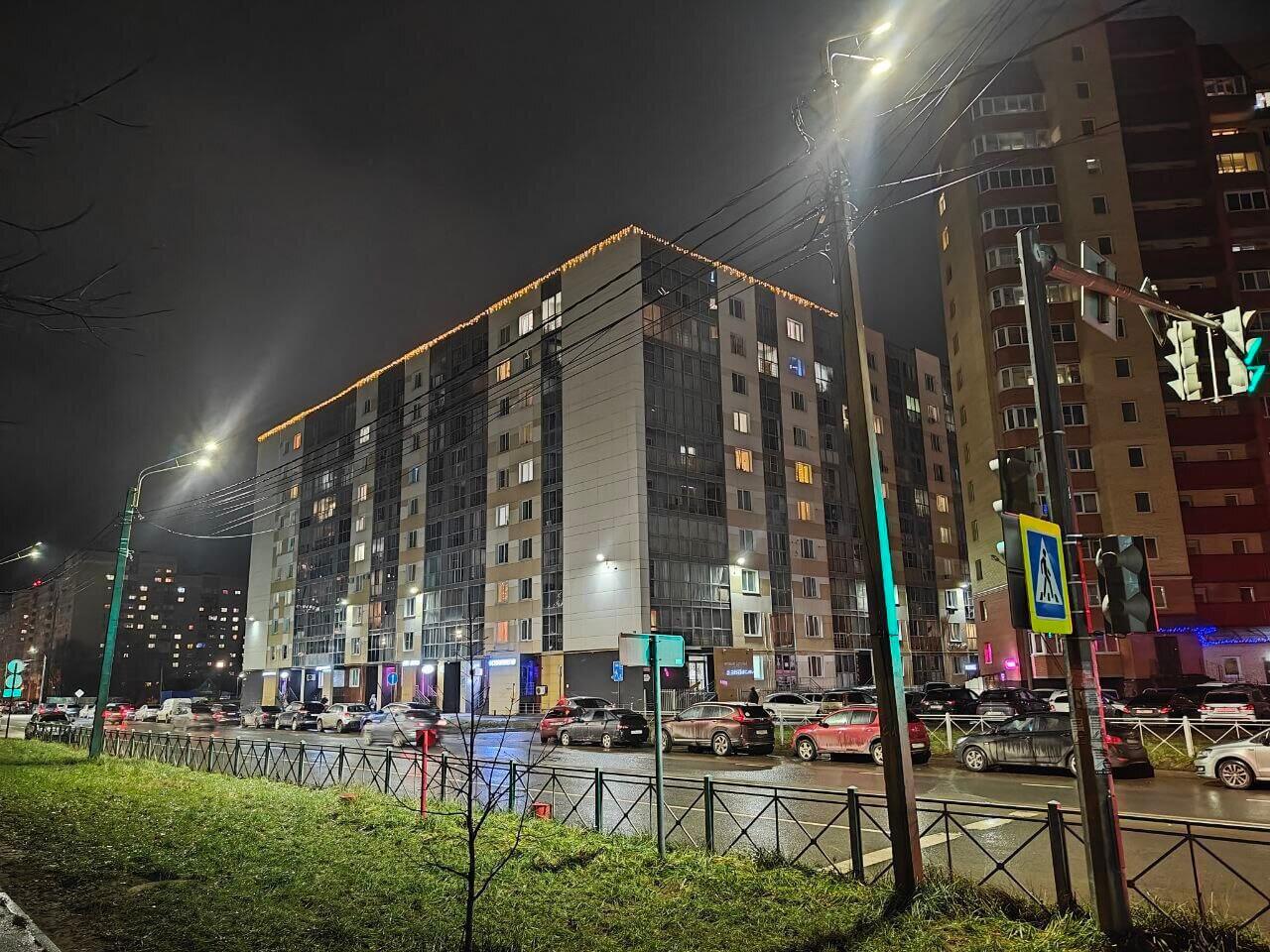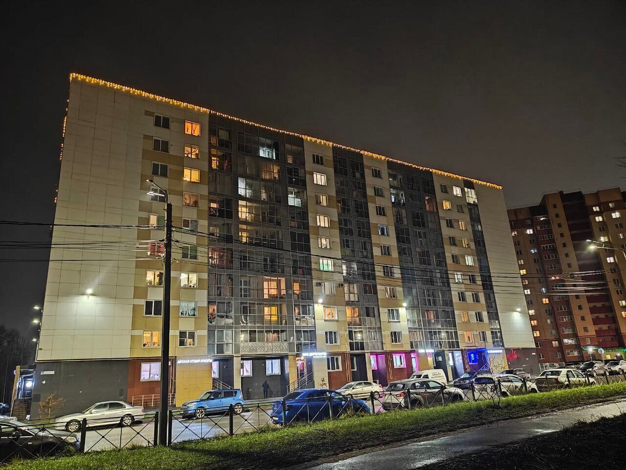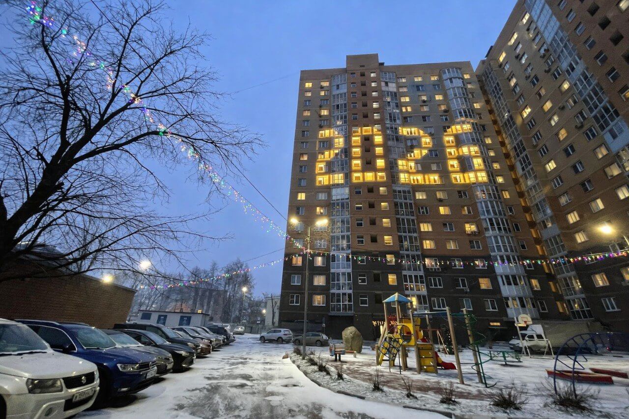 Для создания праздничного настроения во дворе установлена гирлянда над детской площадкой, световыми гирляндами оформлены хвойные насаждения у подъездов.