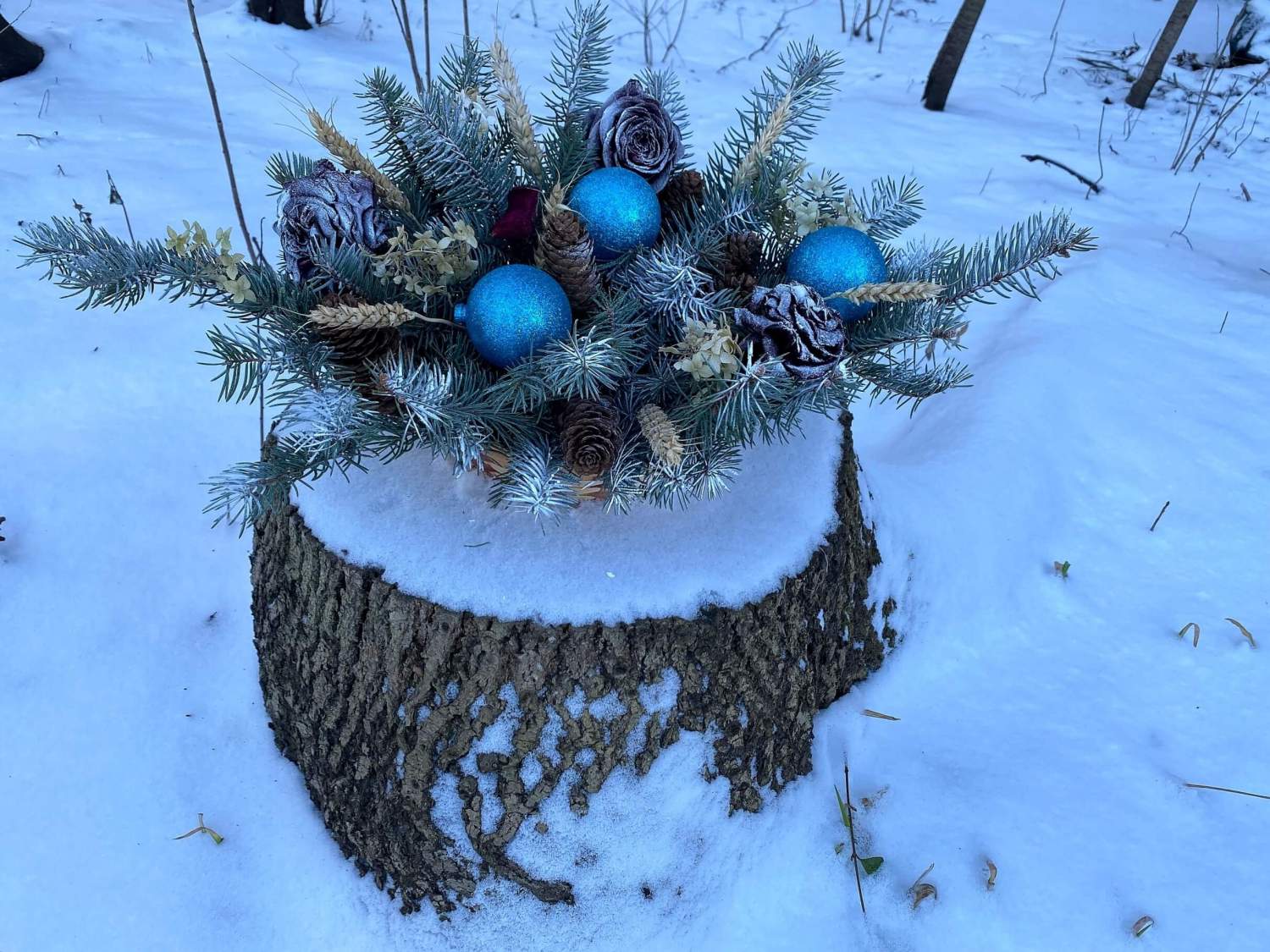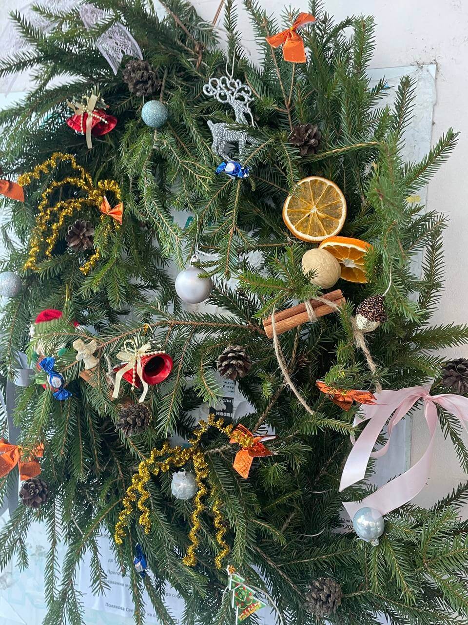 Сделали на входные двери веночки вручную из веточки сосны с собственной дачи.