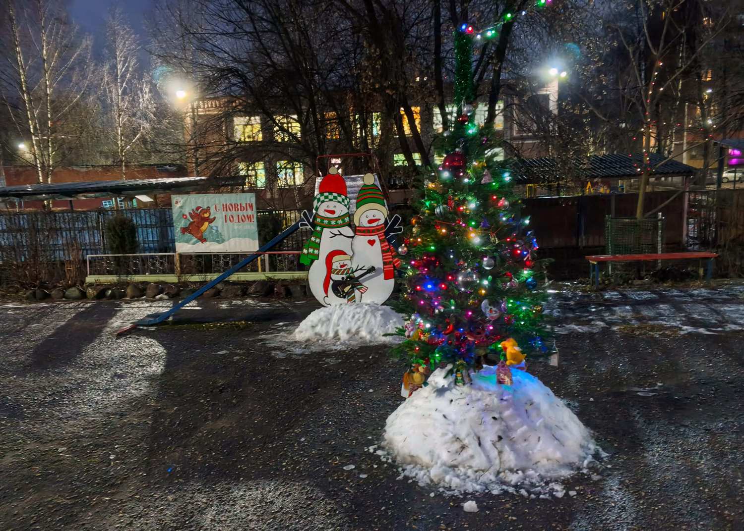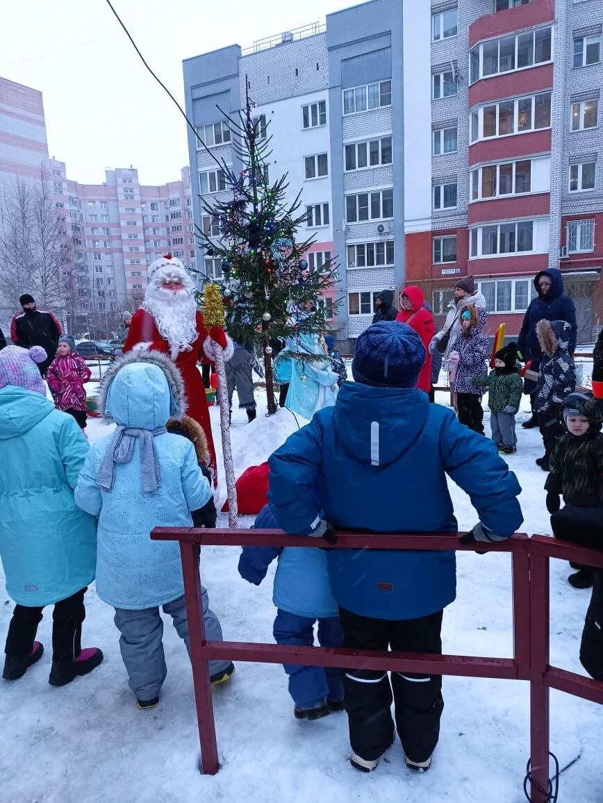 В центре детской площадки традиционно размещена елочка и маленьких жителей ждет ежегодный праздник во дворе, с песнями, танцами, Дедом Морозом, Снегурочкой и, конечно, угощениями!