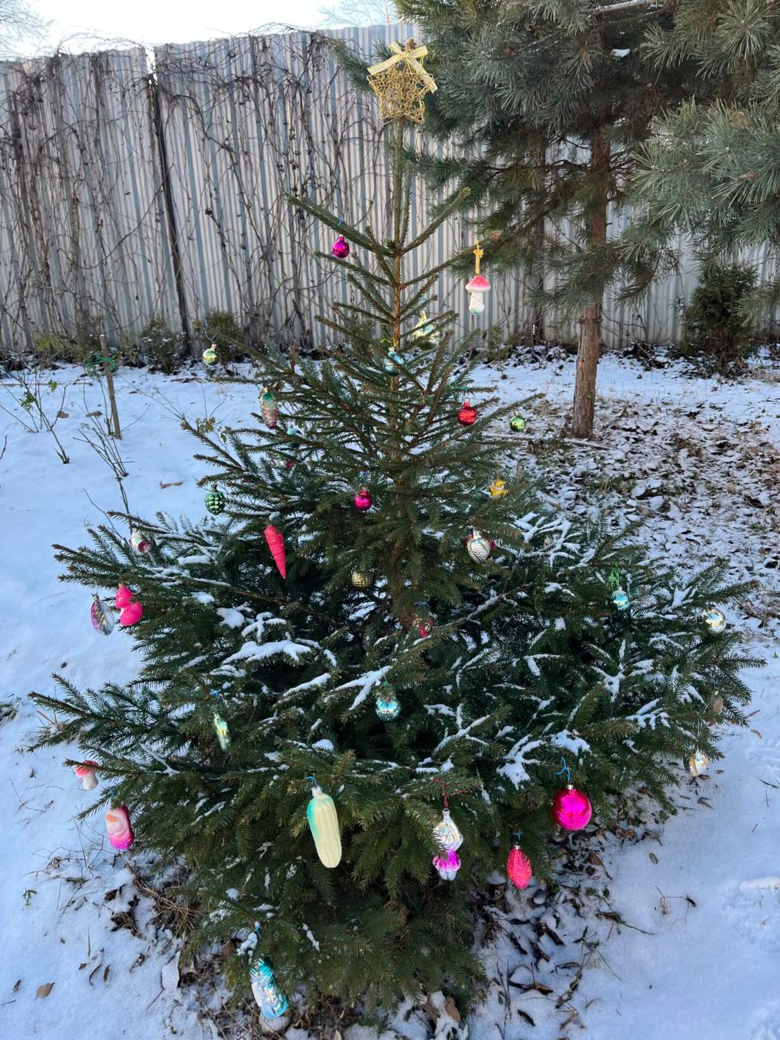 Украсили Малышку-Елочку стеклянными ретро-игрушками из детства.
