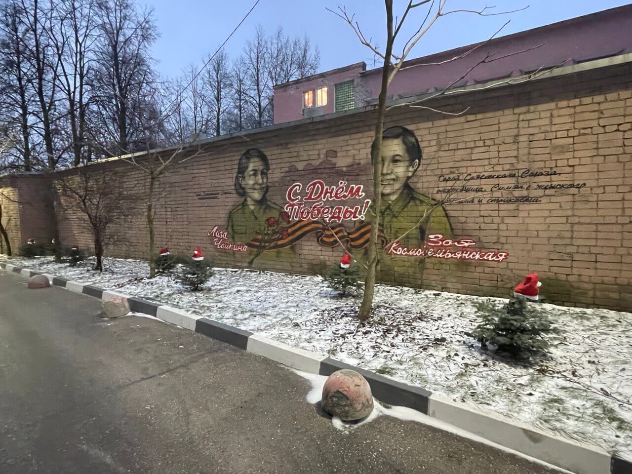 Елочки, высаженные вдоль своеобразной аллеи памяти героев-партизанок Зои Космодемьянской и Лизы Чайкиной, надели новогодние колпачки.