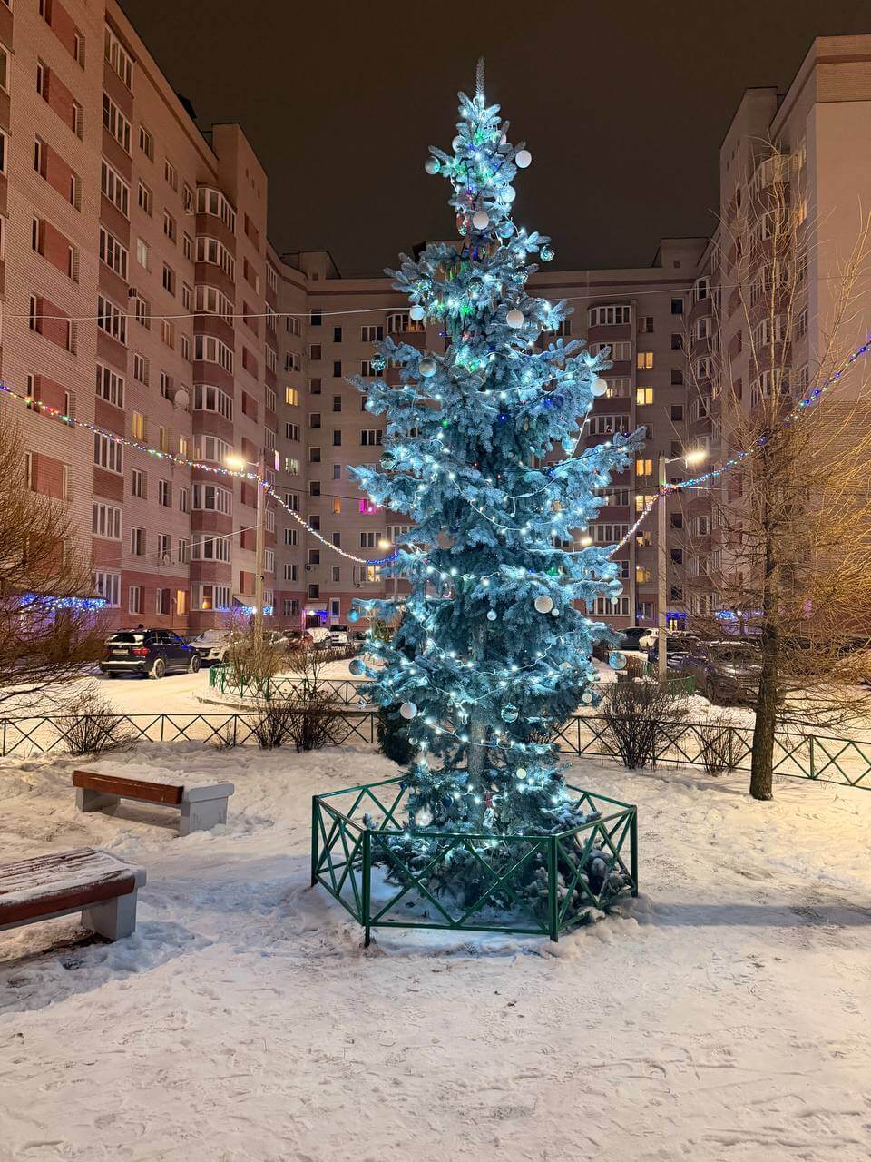 В преддверии самого волшебного праздника наша дворовая территория преобразилась и наполнилась атмосферой уюта и радости. Две нарядные ели стали настоящим украшением двора, а входные группы подъездов оформили новогодние венки, создавая праздничное настроение для всех жителей и гостей.