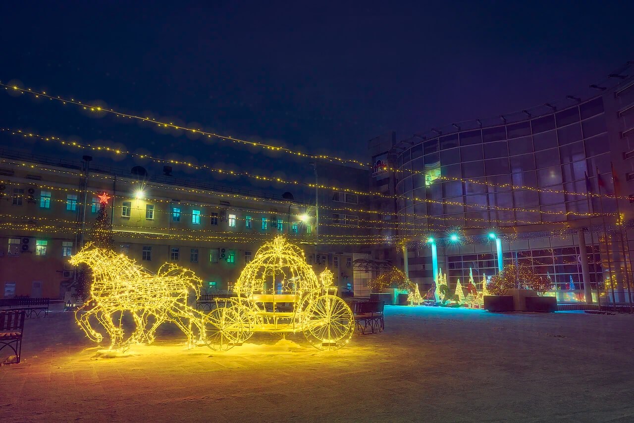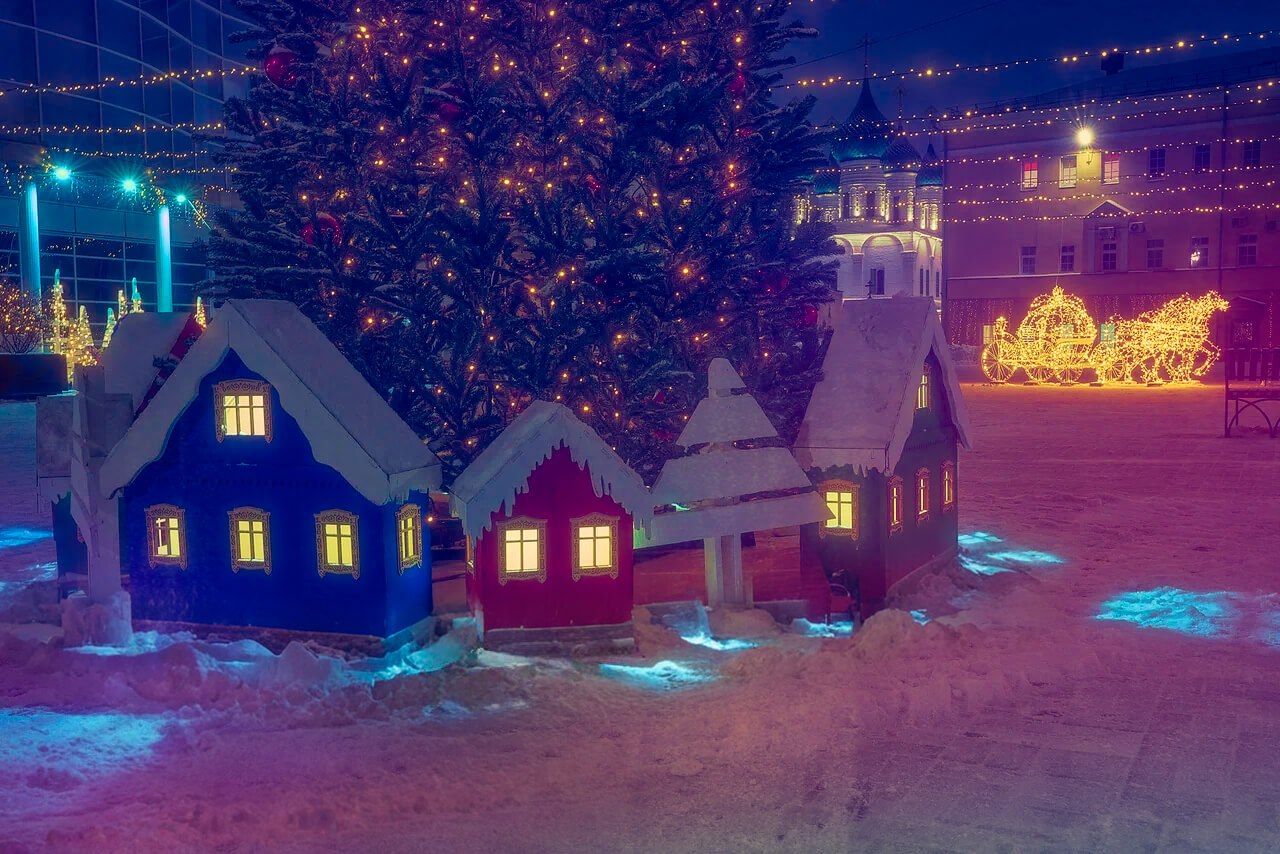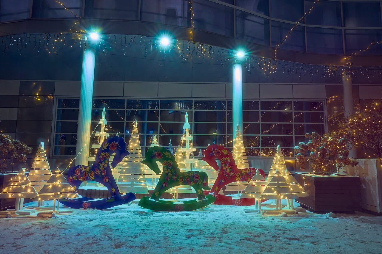 Сказочные теремки и расписные лошадки в традиционном русском стиле, яркие огни и, конечно, красавица ёлка, готовы для создания самых волшебных кадров!