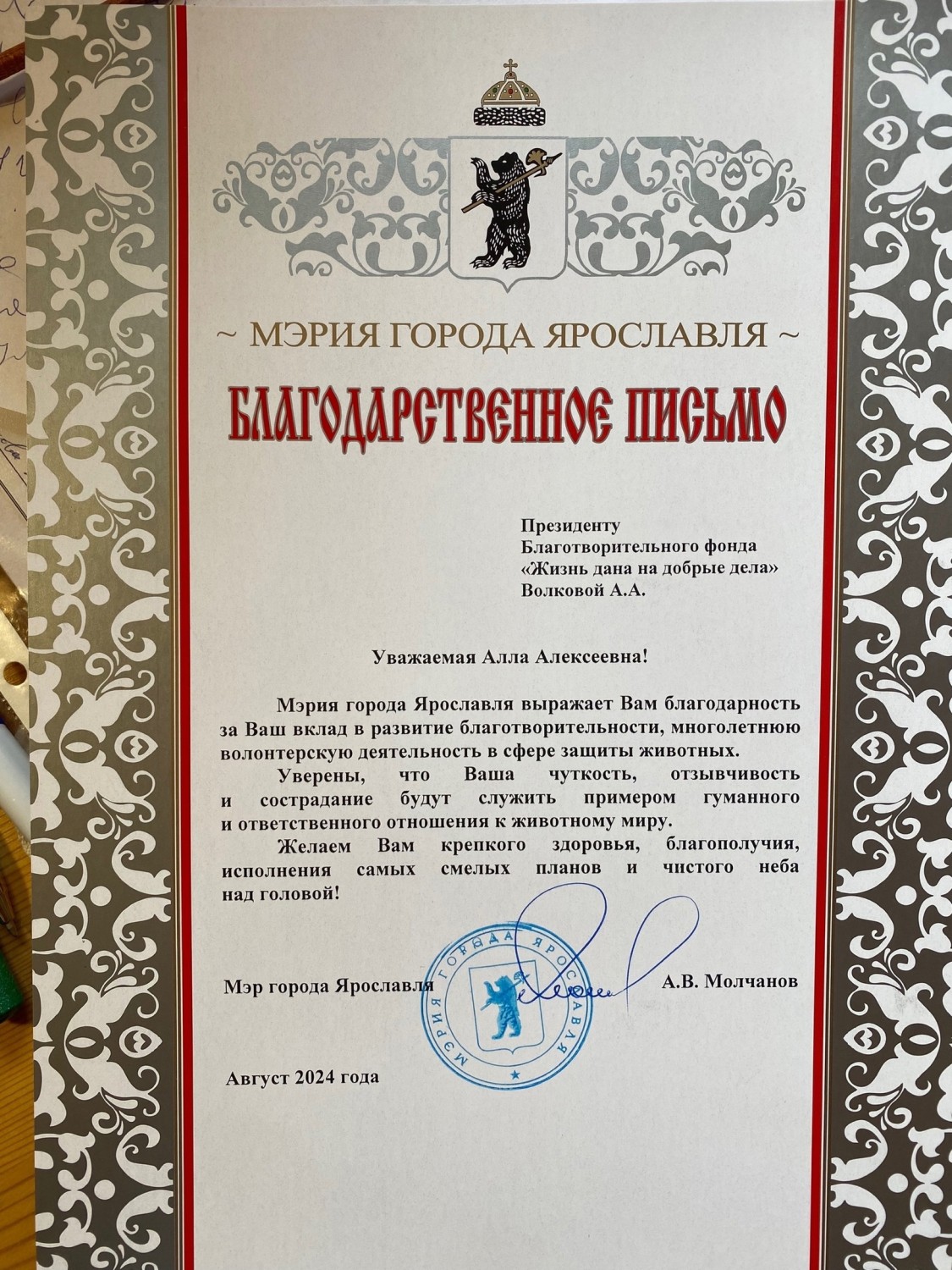 Огромная благодарность всей команде проекта, партнерам, городской власти, волонтерам, жителям нашего города. Благодарностями мэрии Ярославля и благотворительного фонда «Жизнь Дана на добрые дела» отмечены наиболее активные участники и партнеры проекта.